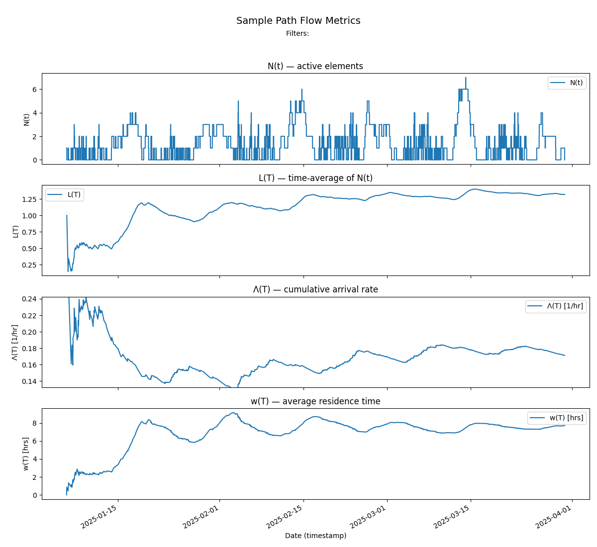 Short-window flow metrics still have their place: they provide tactical visibility into ongoing work. But they are volatile and offer little insight into the deeper dynamics driving the process. The two perspectives complement each other—short window metrics help you manage flow in the present, while sample-path metrics help you reliably communicate about what a process does free of measurement bias8.